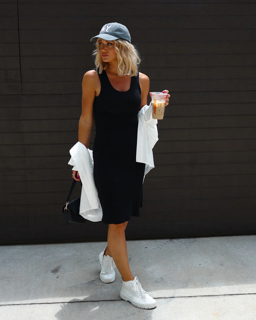 Lorena Cotton Blend Ribbed Side Slit Midi Dress
