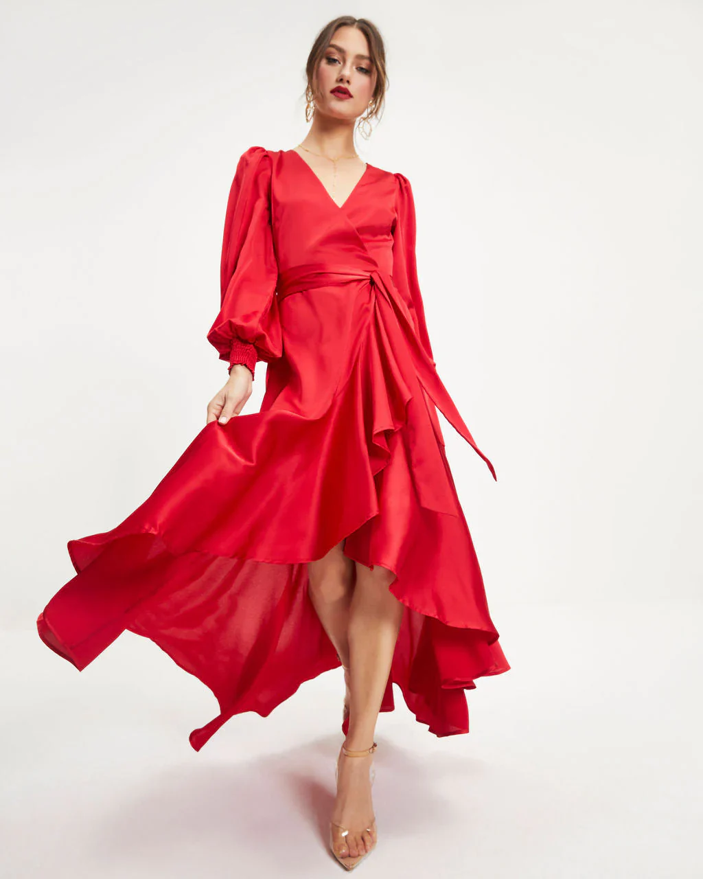 Irresistible Desire Satin Ruffle Maxi Dress