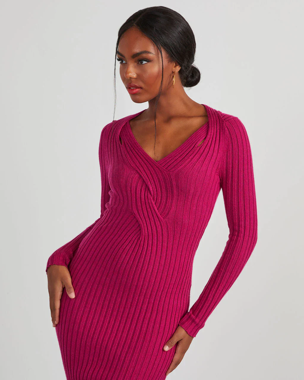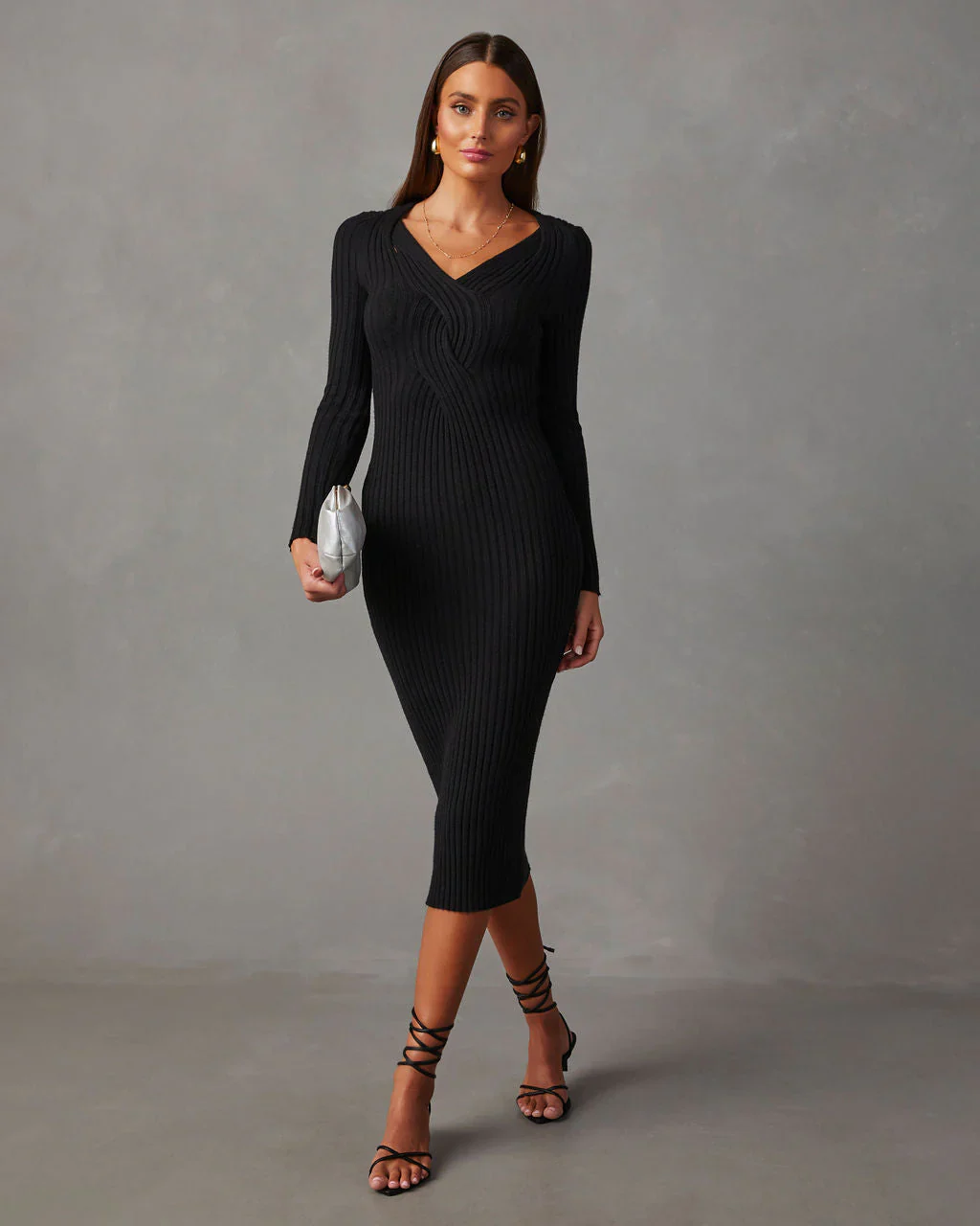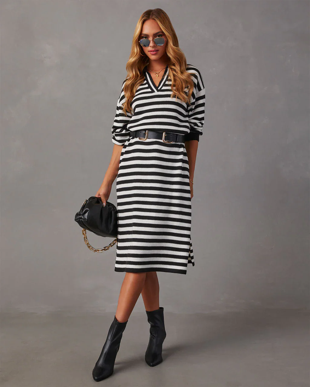 My Sweet Time V-Neck Midi Sweater Dress