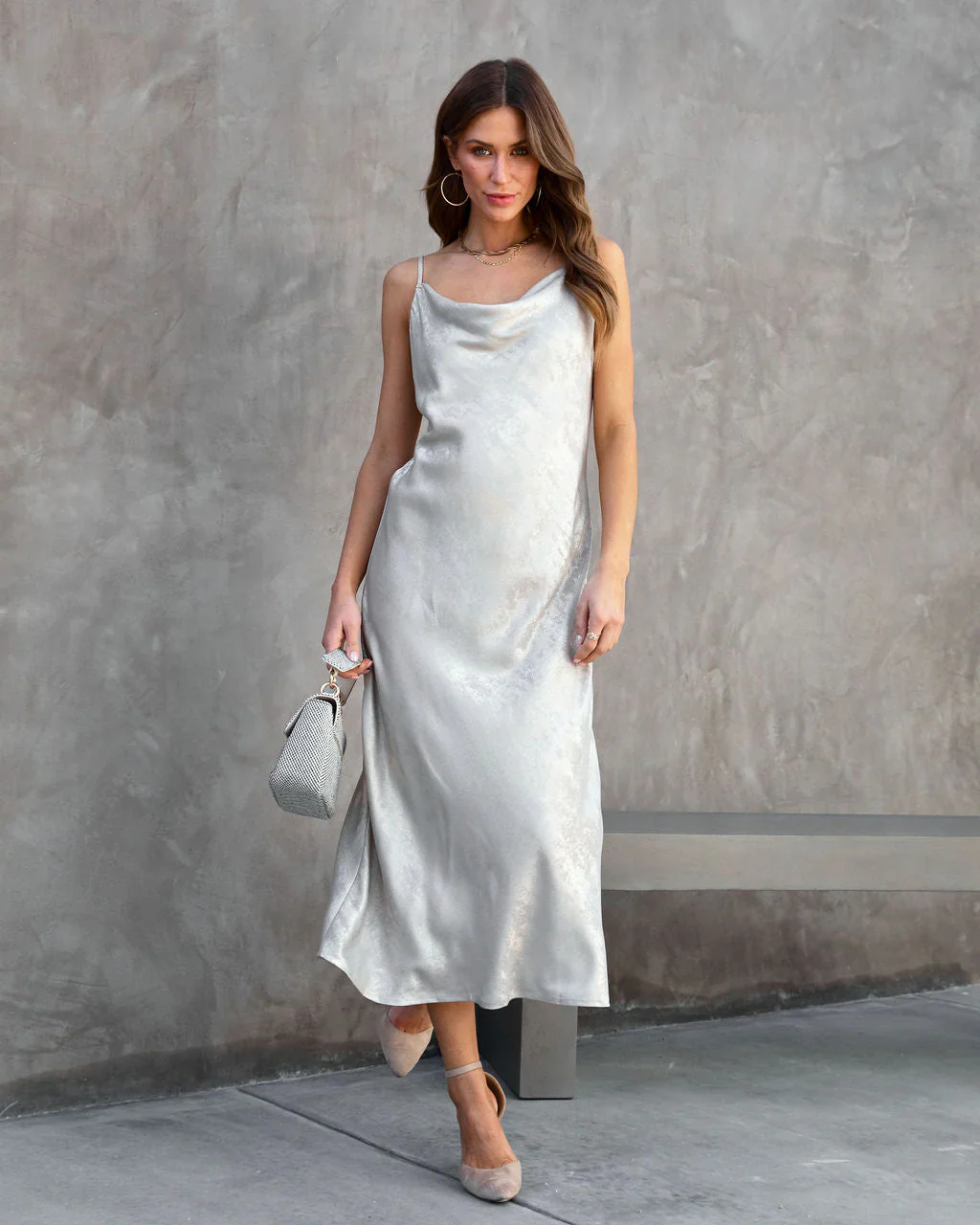 Never Turn Back Cowl Neck Side Slit Maxi Dress