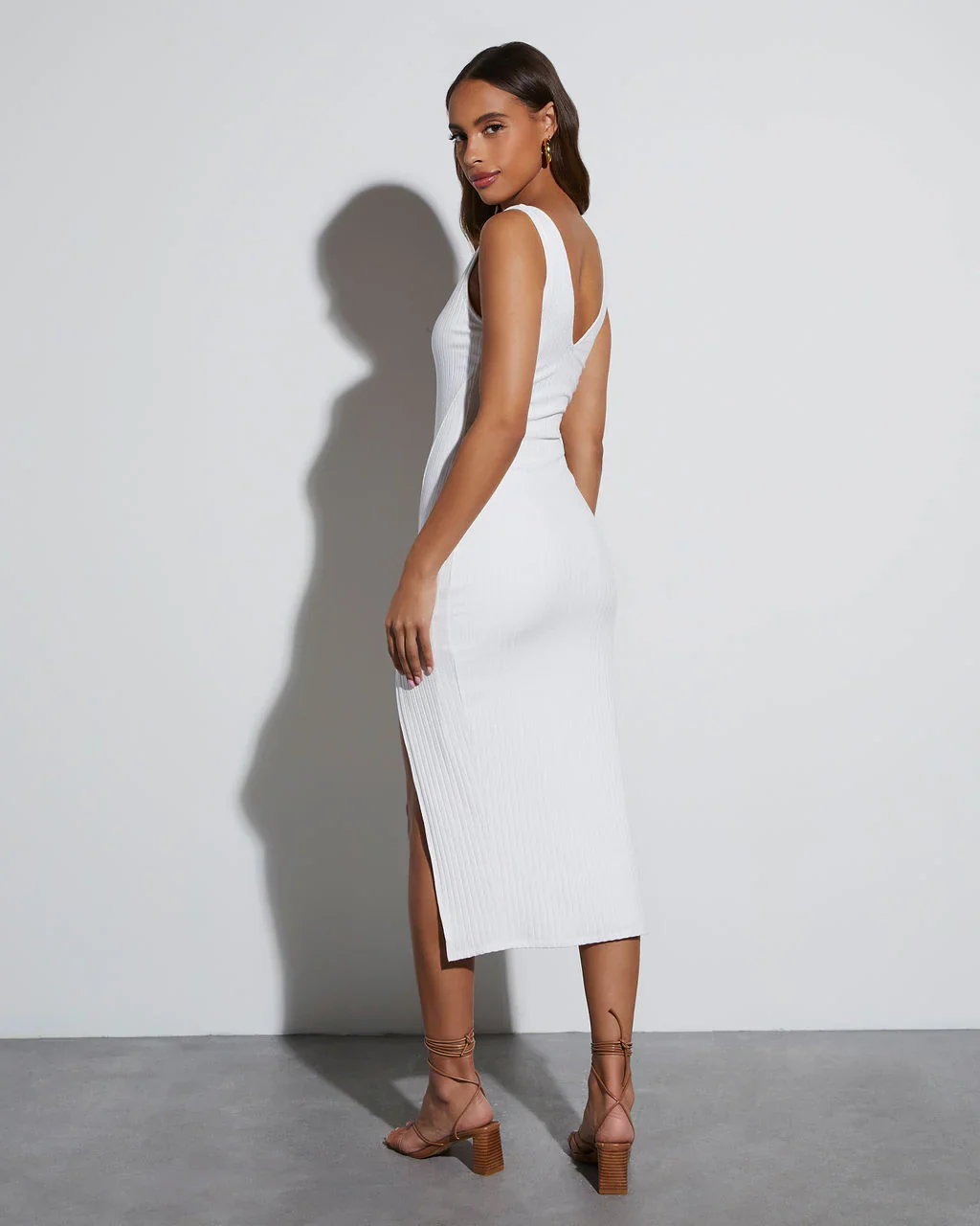 Lorena Cotton Blend Ribbed Side Slit Midi Dress