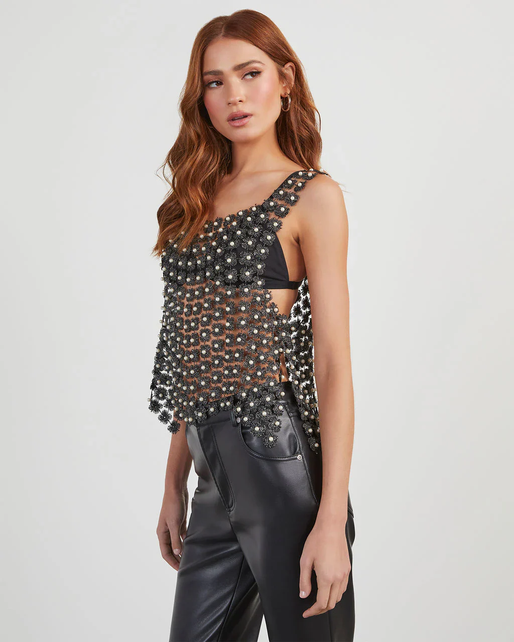 Lizzie Flower Pearl Embellished Top
