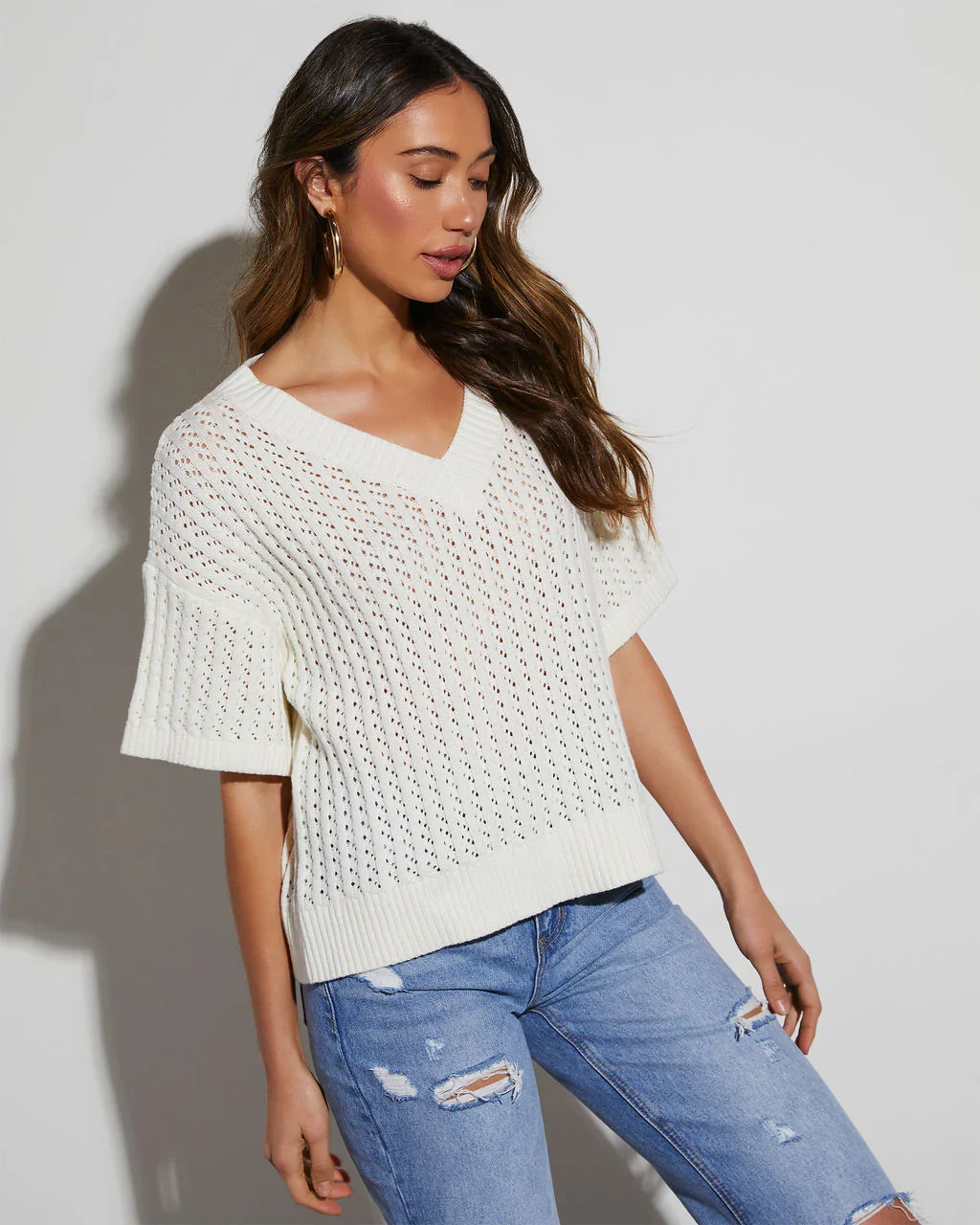 Catch Me At The Sandbar Knit Cotton Blend Top