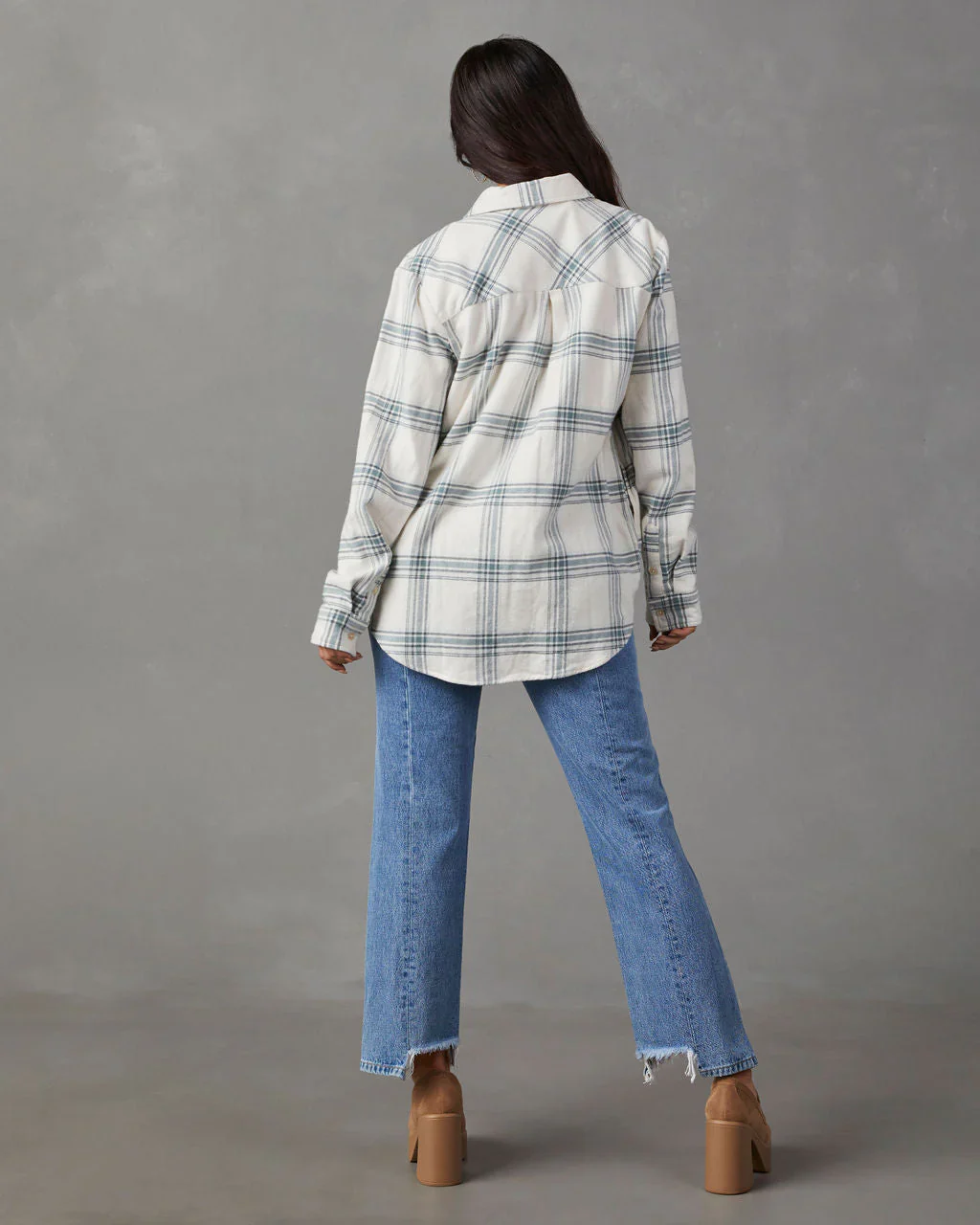 Ciera Oversized Cotton Plaid Button Down Top