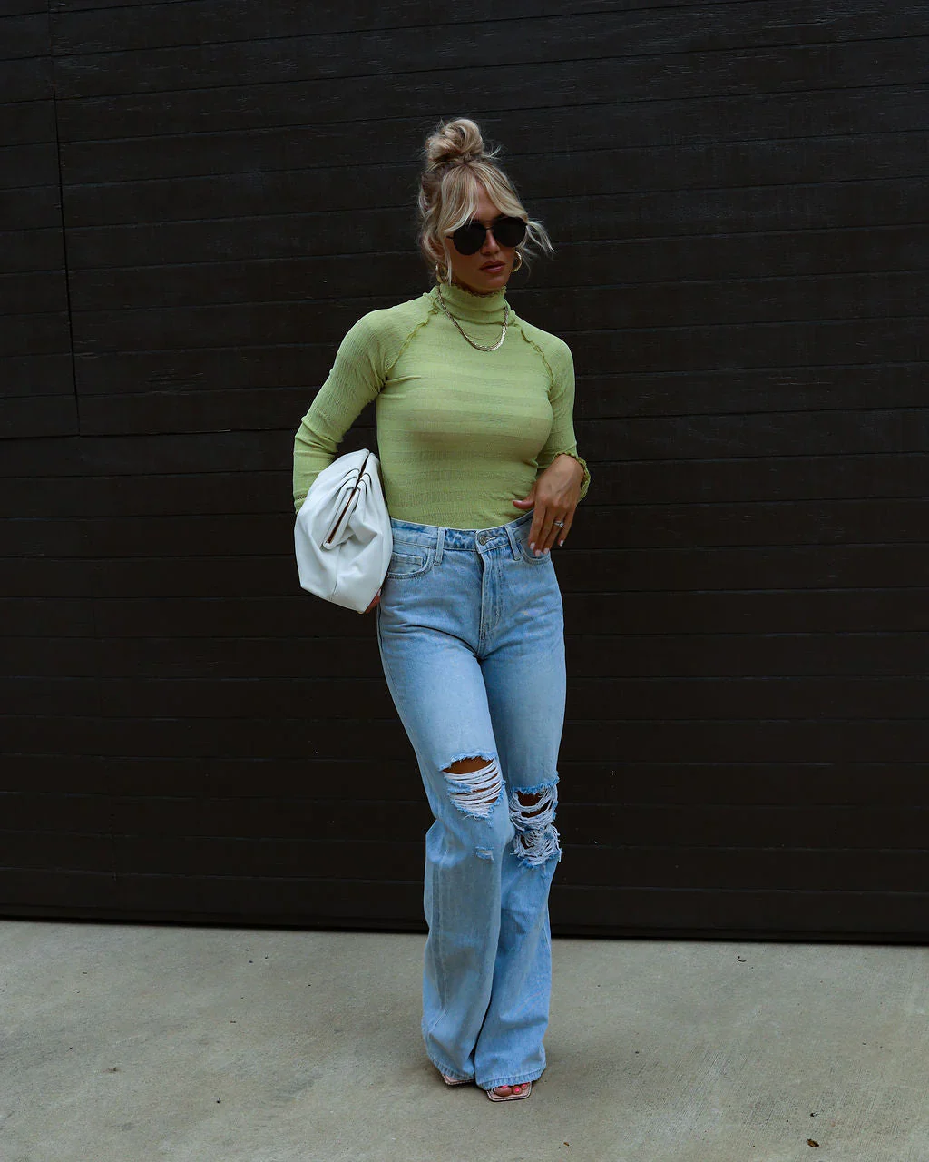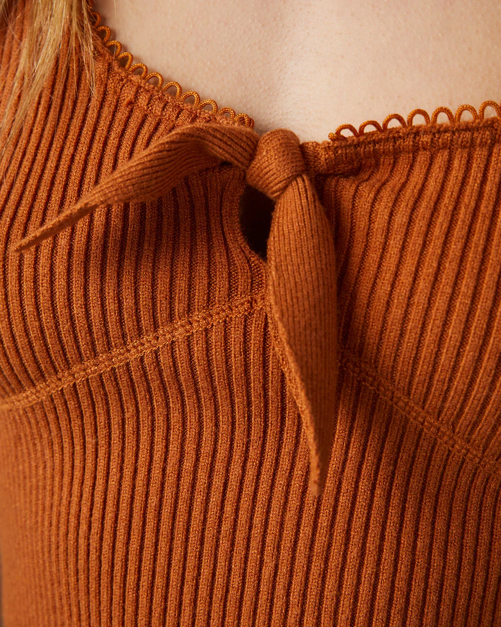 Christa Ribbed Knit Halter Long Sleeve Top