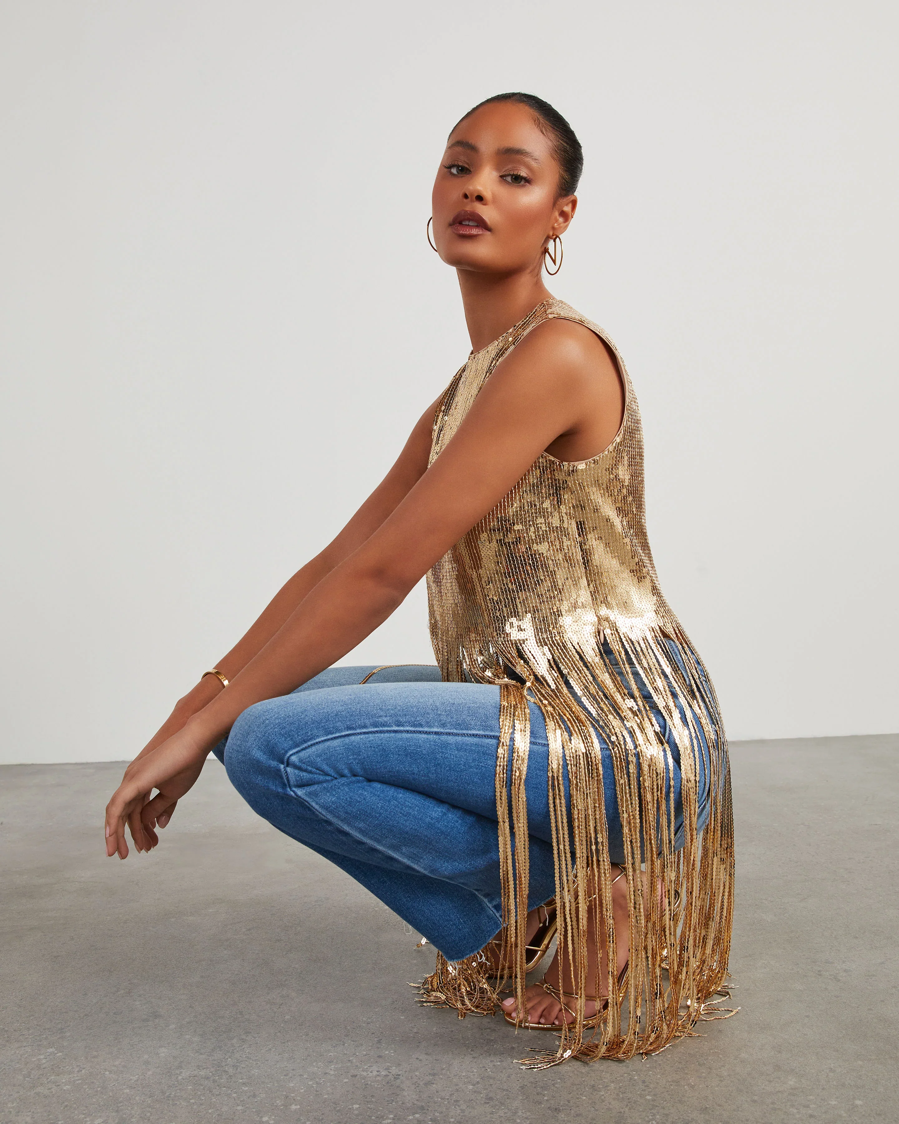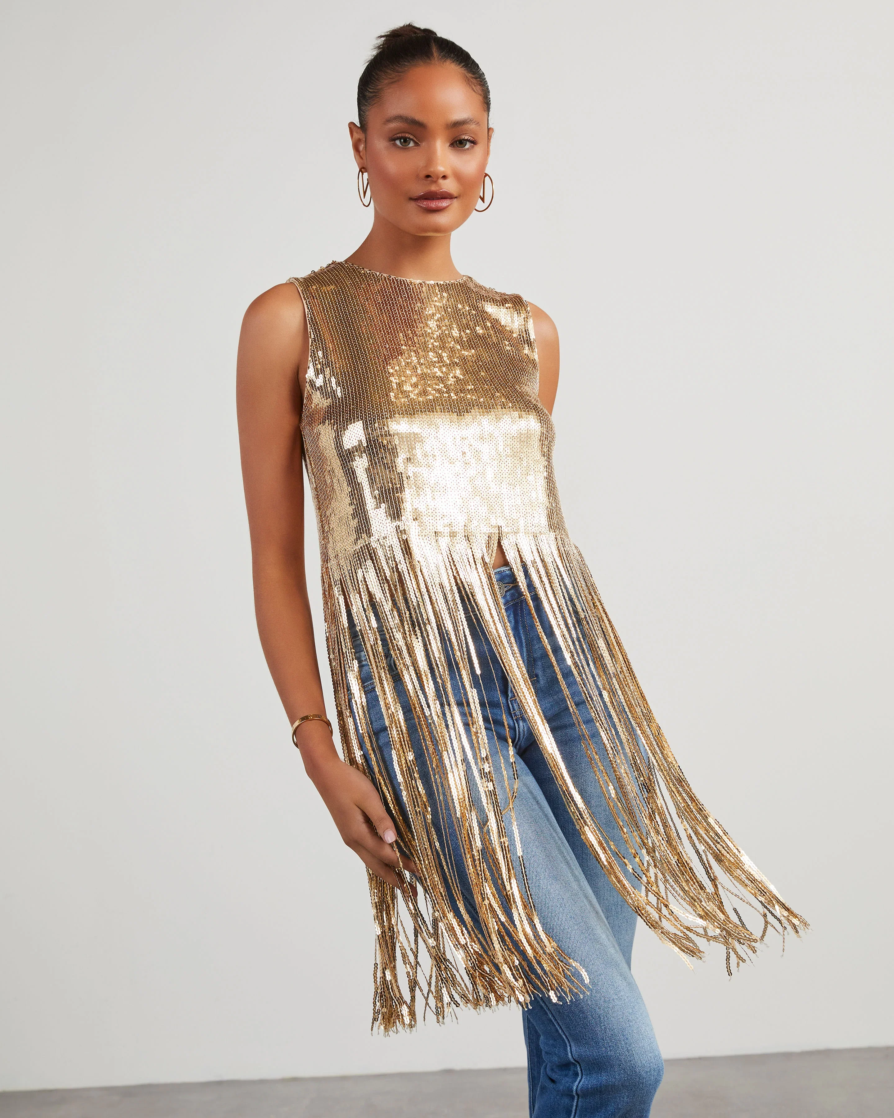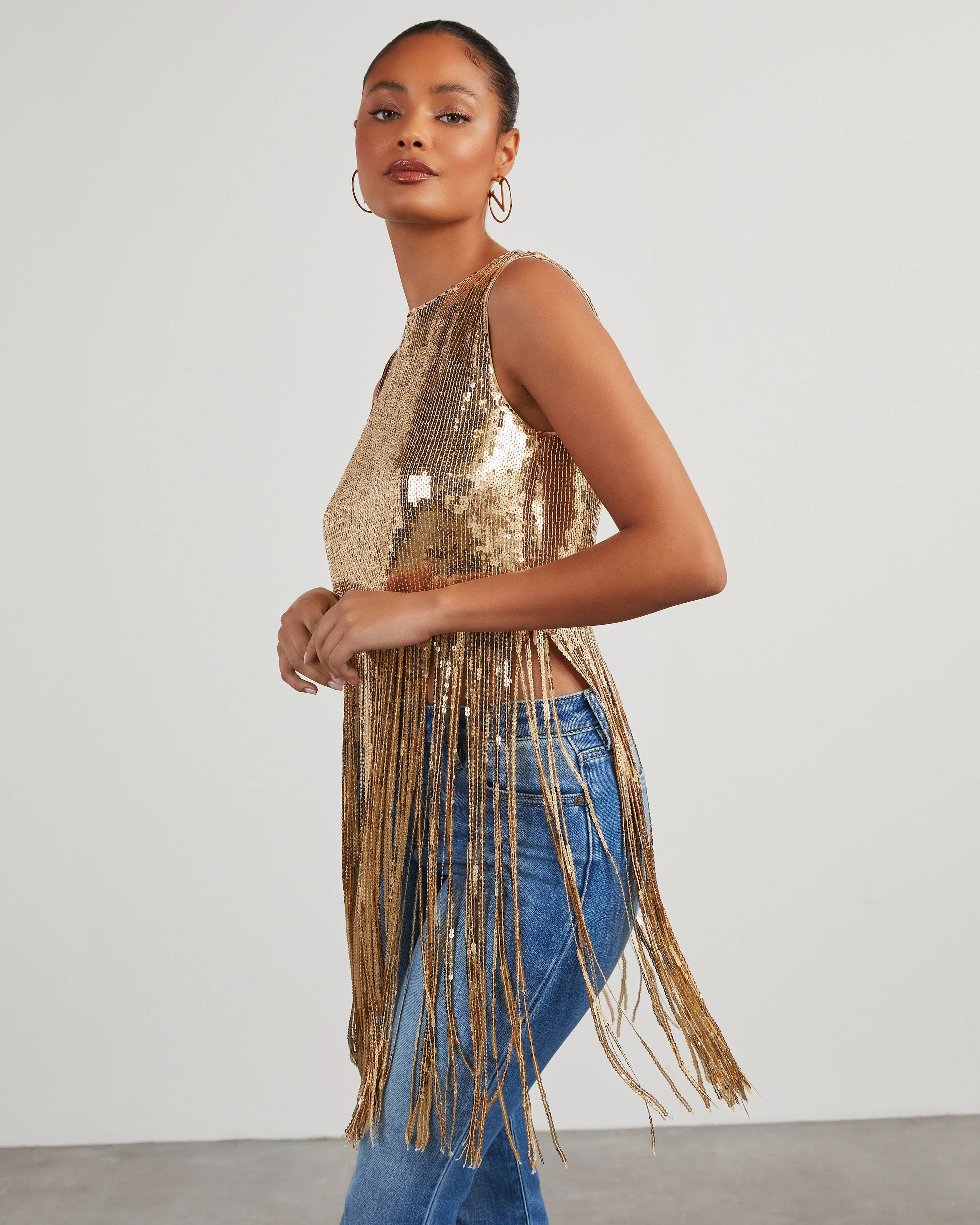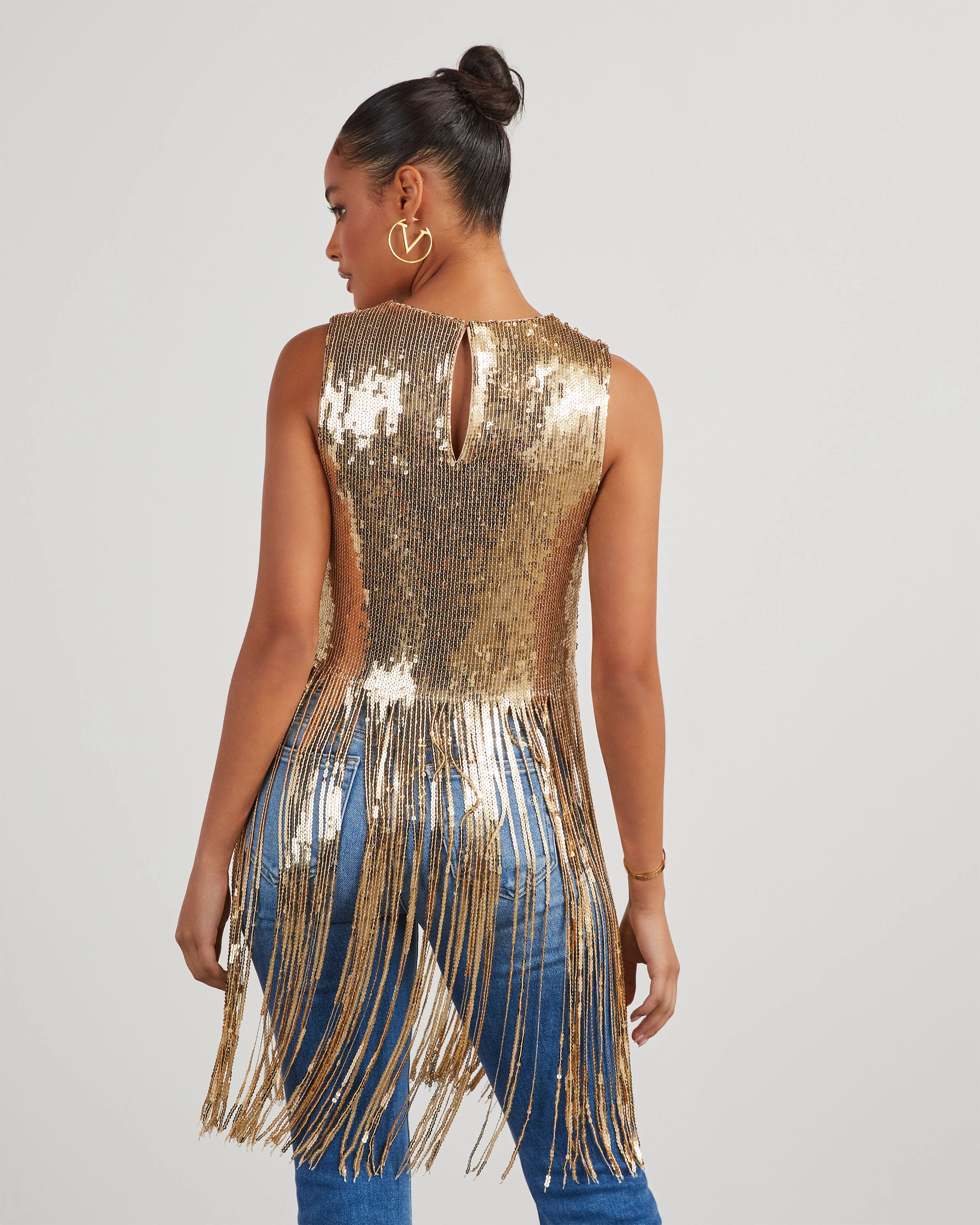Dallas Glam Sequin Fringe Top
