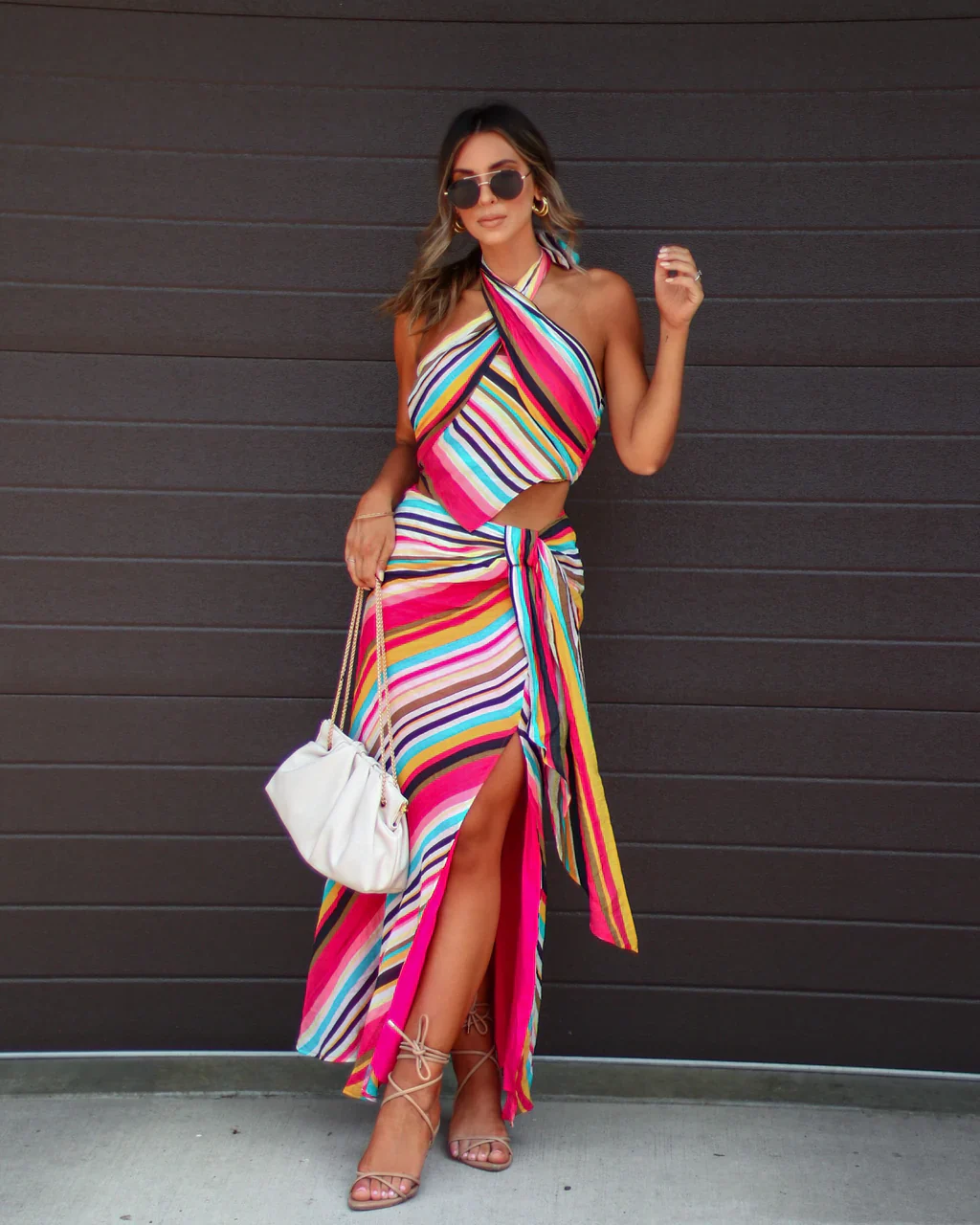 Derren Striped Wrap Halter Top