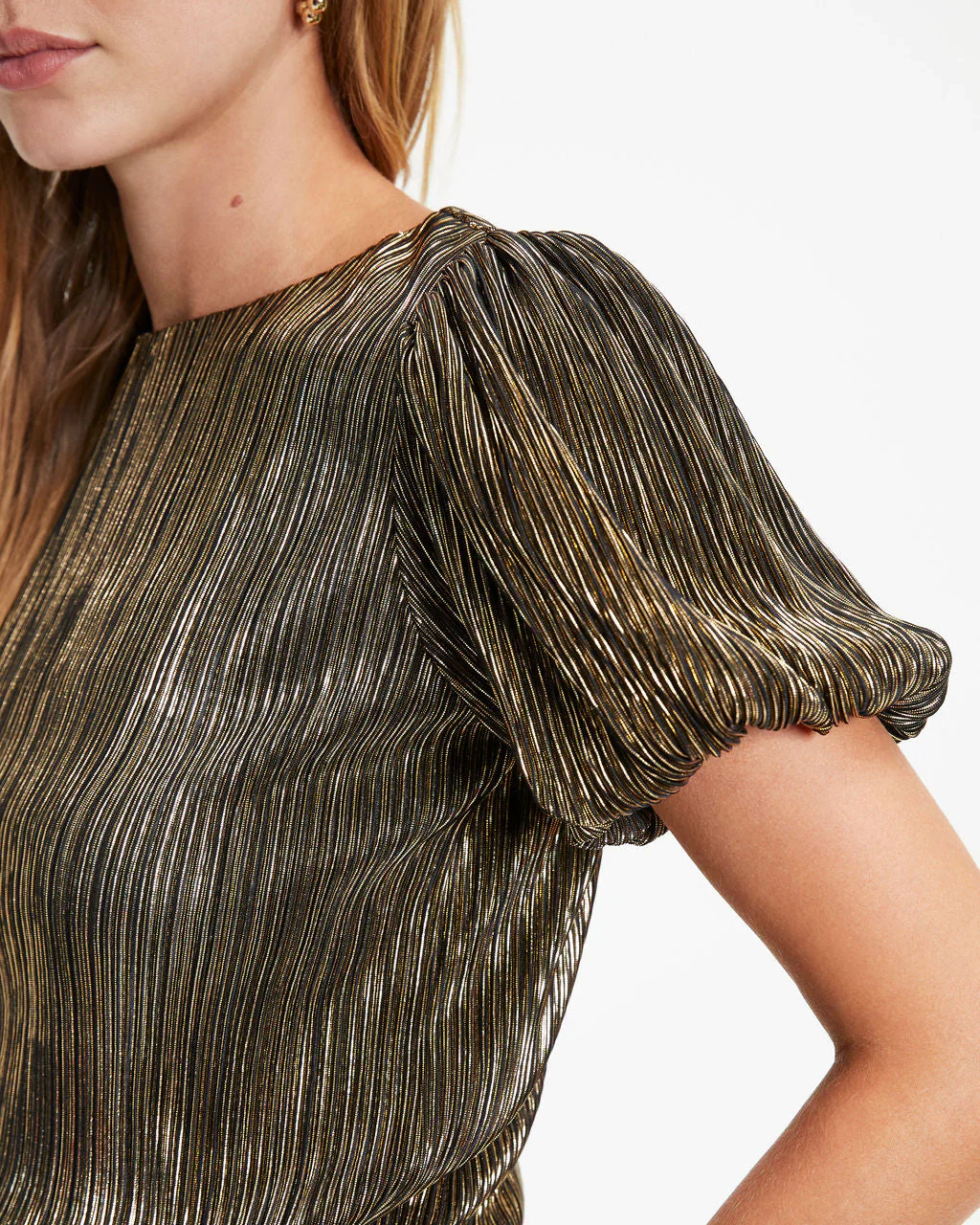 Disco Living Plisse Metallic Puff Sleeve Top