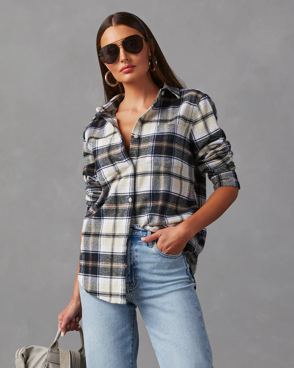 Guthrie Oversized Plaid Button Down Top