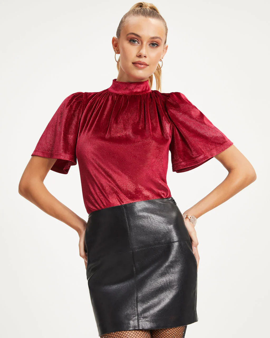 Holly Jolly Velvet Flutter Sleeve Top