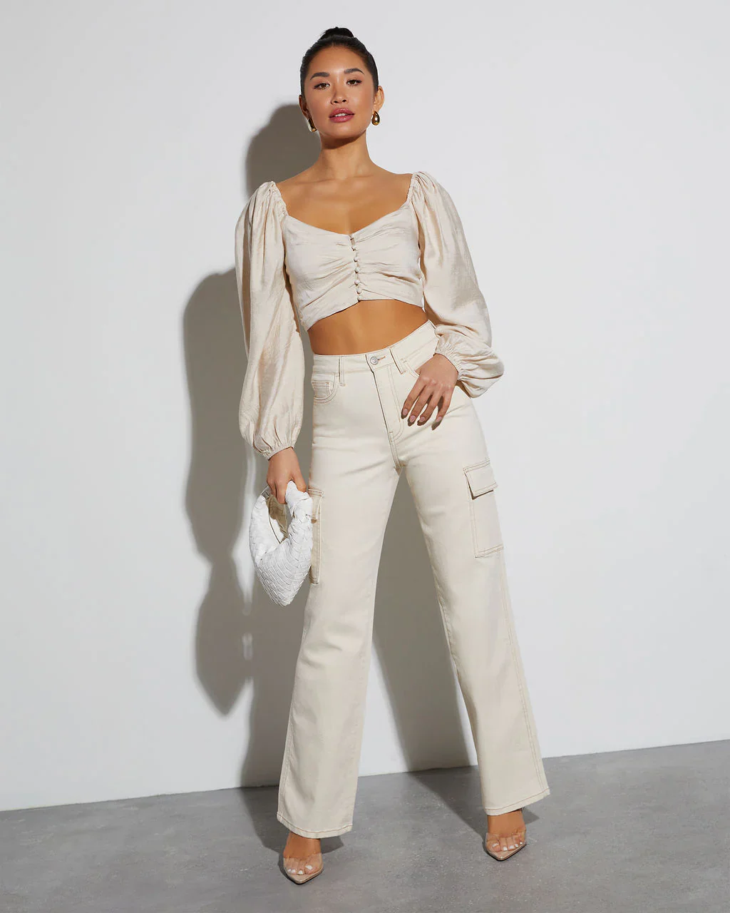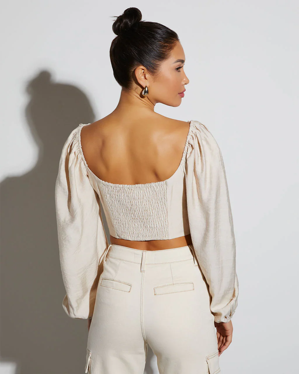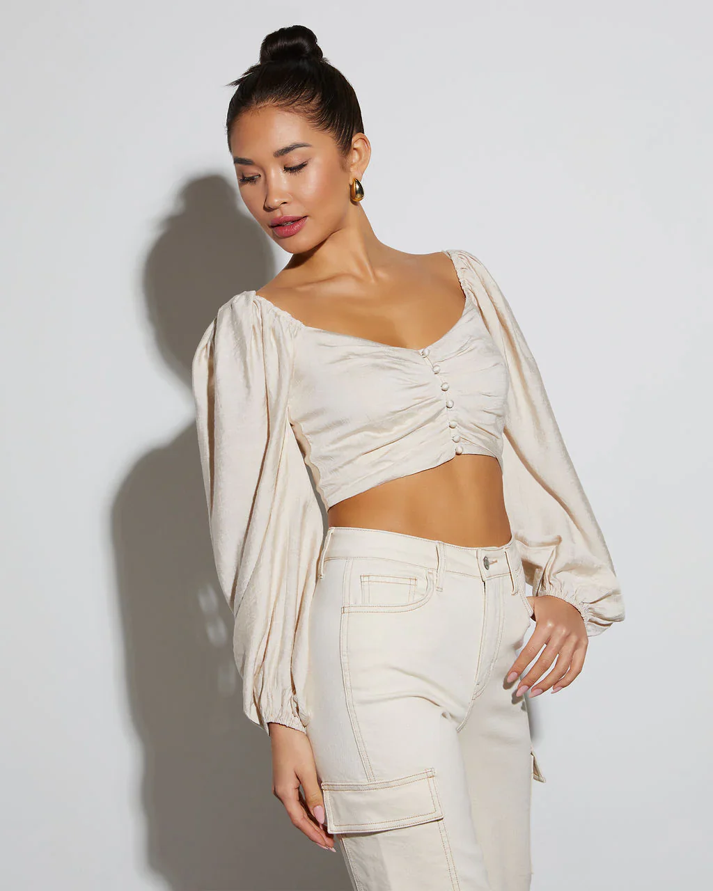 Got It Good Puff Sleeve Ruched Crop Top
