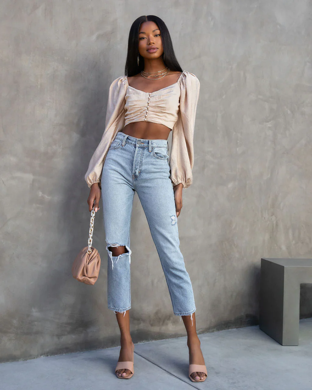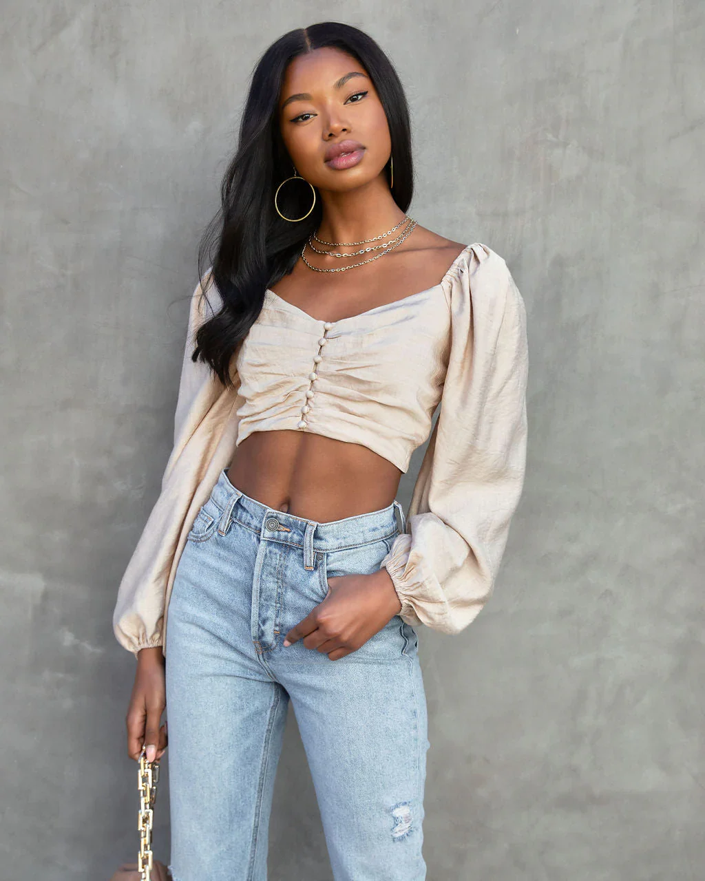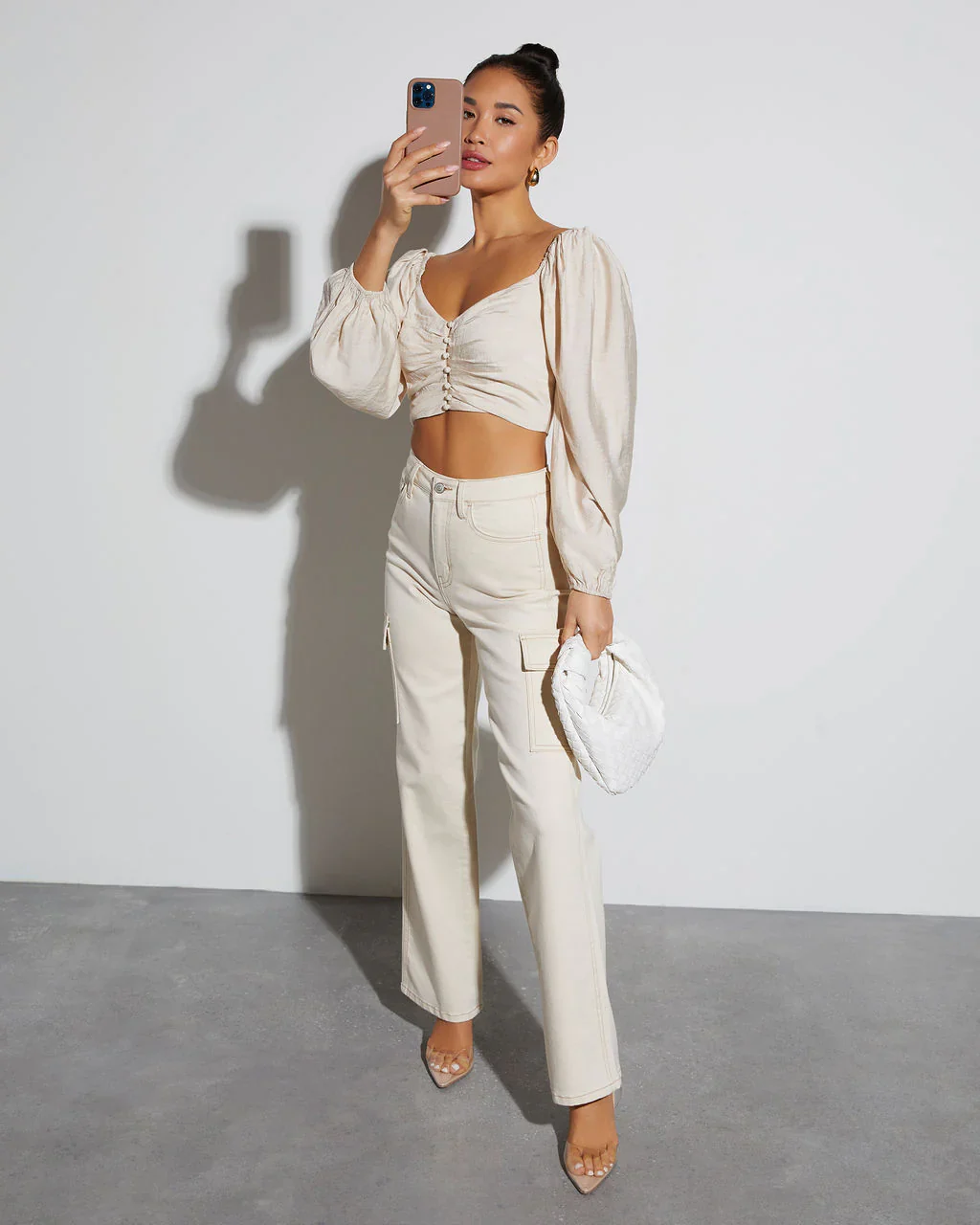 Got It Good Puff Sleeve Ruched Crop Top