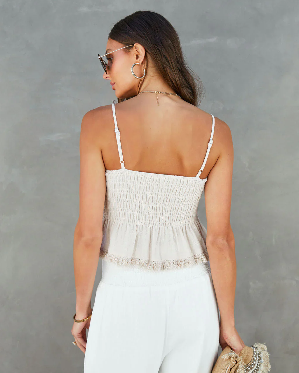 Haley Cotton Smocked Frayed Hem Babydoll Top